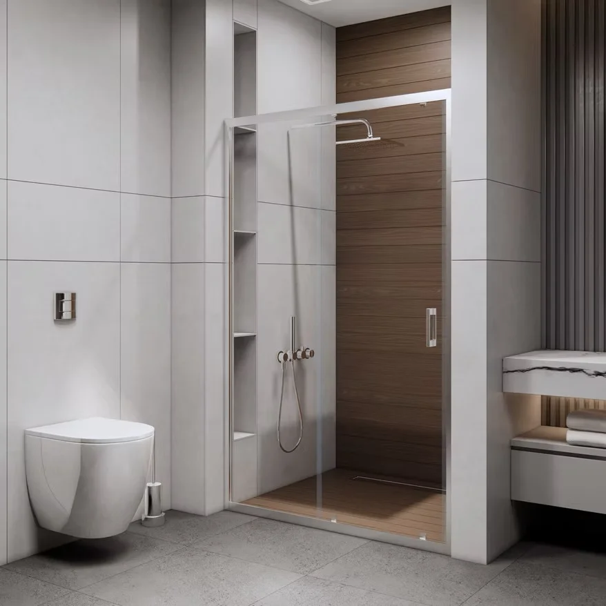 1 sabit, 1 hareketli sürgülü ön cephe girişli duş kabini