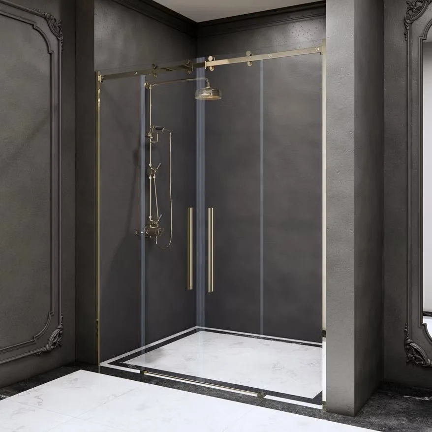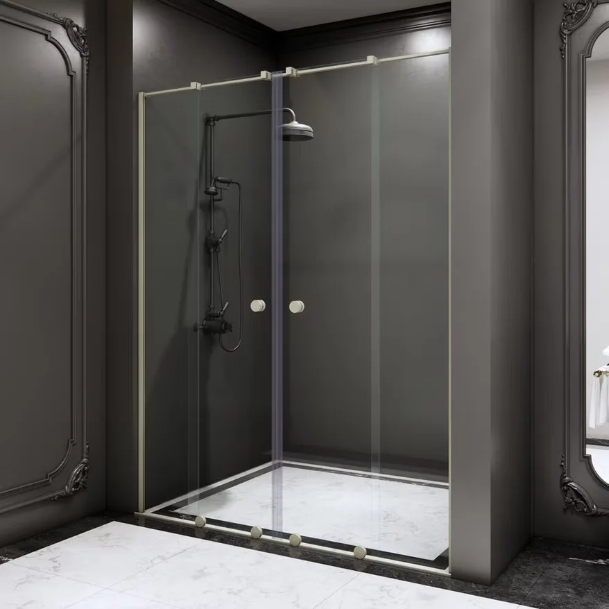 1 sabit, 1 hareketli sürgülü ön cephe girişli alttan yürüyen sistem duş kabini
